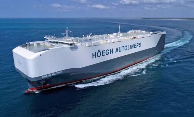 “極光級”船,是迄今為止建造的最大、最環保的汽車運輸船。該船型運載能力達9100車,配置14層甲板,具有加強的甲板和增強的內部坡道系統,允許電動汽車在所有甲板上行駛。動力源上除了可以使用LNG和常規燃料外,在對發動機、油箱和輔助系統稍作修改之后,該船就可以過渡到使用綠色氨氣或甲醇等未來零碳燃料運營。